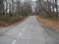 During the American Revolution, British troops marched through the area.[8] General Benedict Arnold and his troops stayed at farms along was the way.[9] General Arnold drilled his troops in the area, on the current location of M.S. 216. In order to help move military supplies from British ships using the Whitestone Landing, and the troops encamped further east, a new road was built to connect the Fresh Meadows Road with Hempstead. This road began at what is now the intersection of Utopia Parkway and 73rd Avenue, near a local landmark along the Fresh Meadows Road: the remnants of a large tree that had burned after being struck by lightning, and that was known as the "Black Stump". The road took its name from this feature, and was called "Black Stump Road."[10][11][12]