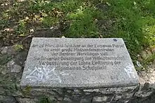 The site was also known as the "Place by the Lonely Poplar" (German: Platz an der Einsamen Pappel).[7] Its landmark was a solitary black poplar known as the "Lonely Poplar" (German: Einsamen Pappel), which was standing on the parade ground near the corner of Topsstraße and Cantianstraße.[8][9][10] The first demonstrations in Berlin during the revolution of 1848 took place at the site on 26 March 1848. Up to 20,000 people gathered near the Lonely Poplar in front of Schönhauser Tor to demand voting rights, a 12-hour work day, minimum wages and public, rather than private or religious, schools from Prussian king Friedrich Wilhelm IV.[5][10] The demonstration is today marked by a memorial stone on the site.[11] The poplar was cut down in 1968. A tree descending from the old poplar, grown in a plantation in Dresden, surrounded by aspen trees now stands on its place.[5][10]