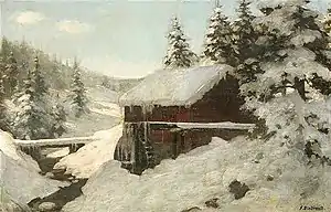 After 1889, he was a self-employed genre and landscape painter; with a preference for motifs from the Vogelsberg, ther Rhön, and the Bavarian Alps. Later, he became active in the Willingshäuser Artists' Colony.