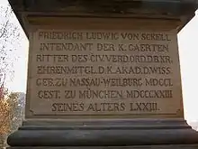 Friedrich Ludwig von Sckell (13 September 1750, in Weilburg – 24 February 1823, in Munich) was a German landscape gardener from Weilburg an der Lahn. He is regarded as the founder of the English gardens in Germany, which he introduced to the German experts with his writings on garden design. His manner of grouping and choice of plants is still used to an extent in German landscaping today.