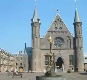 Thulemeyer was poorly rewarded and had difficulties to pay his expenses.[4] Around 1782 or before he made acquaintance with a rich widow Agatha Theodora Geelvinck (Amsterdam, 1739 - Hanau, 1805) who paid for his expenses.[5] She came from a powerful and very rich family of burgemeesters from Amsterdam and lived almost next to the French Embassy. Both her brothers Nicolaas Geelvinck, Joan Geelvinck and her daughter Constancia van Lynden van Hoevelaken had either close relations with the Patriots or with the stadholder. Frederick the Great did not allow to marry her, may be while his independence was in danger. Thulemeyer did improve his financial situation and moved to an elegant house near the Binnenhof. The rumours about his venality did not diminish.