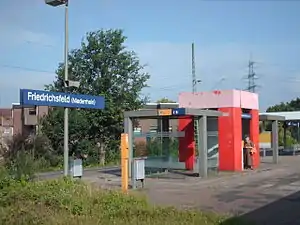 Friedrichsfeld is a railway station in Friedrichsfeld, part of Voerde, North Rhine-Westphalia, Germany. The station is located on the Arnhem-Oberhausen railway. The train services are operated by Deutsche Bahn and Abellio Deutschland.