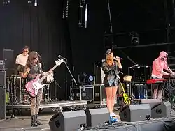 ![]() Friends on-stage on 18 August 2012 at the Summer Sundae festival, Leicester, England, UK | |