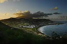 Frigate Bay North is extensively developed, and lies against the rougher Atlantic coast of the island.