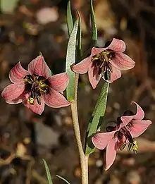 Fritillaria karelinii grows up to 35 cm (14 in) tall. Flowers of the wild populations are rose-violet with darker markings; flowers of cultivars may be different.[2][6]