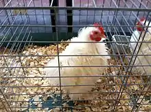 The Frizzle is a breed of chicken with characteristic curled or frizzled plumage. While the frizzle gene can be seen in many breeds, such as the Pekin and Polish, the Frizzle is recognised as a distinct breed in a number of European countries[4][6] and Australia.[2] In the United States frizzled chickens are not considered a breed, and at shows are judged by the standards of the breed they belong to.[7]:24