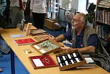 A selection of the coins were put on display at the British Museum on 8 July 2010 for a press photocall,[1] and the entire hoard was subsequently displayed in Gallery 68 of the British Museum between 15 July and 31 August 2010.[22] Some of the coins from the hoard were exhibited at Frome Library on 22 July 2010,[23] and again on 23 October 2010.[20]