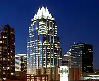Frost Bank was founded in 1868 as a mercantile partnership in San Antonio by Thomas Claiborne Frost, who had served as a lieutenant colonel in the Confederate States Army.[1][2] In February 1899, it was chartered as a national banking association.[1] That year, the bank also reached $1 million in deposits.[2](Worth about $35,216,385.54 with modern day inflation)[3] The bank survived the Panic of 1907 with the aid of an association of local banks and by 1921, sold shares to outside investors for the first time. Frost continued to grow with construction of a 12-story building in 1921, which was the tallest building in Texas at the time. By 1926, Joseph Hardin Frost, brother of T.C. Frost Jr., took over as president of the company.[2]