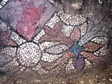 The archaeological excavations from the Frumușeni site, Fântânele, Arad County, were done by the research team composed of dr. Adrian Andrei Rusu (Institute of Archaeology and Art History in Cluj-Napoca), drd. George Pascu Hurezan (Arad County Museum Complex), dr. Peter Hugel (Arad County Museum Complex) and drd. Ileana Burnichioiu ("1 Decembrie 1918" University in Alba Iulia). The mosaic was discovered in August 2003.