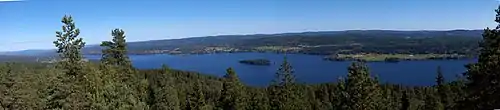 Fryken (Swedish pronunciation: [ˈfry̌ːkɛn])[1] is a chain of three lakes in Värmland, Sweden: Upper, Middle and Lower Fryken. The lakes are separated by two sounds, Sunnesundet and Nilsbysundet. The total length of Fryken is 80 km, but it is only 3 km wide at the widest part. The maximum depth is 120 meters and it is located at 62 meters above sea level. Fryken is drained by Norsälven.