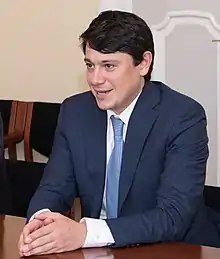 Fuad Muradov (born 22 July 1979, in Baku, Azerbaijan), from 1986 to 1996 studied in 6th secondary school in Baku. He is the Chairman of the State Committee on Work with Diaspora. He has graduated from the Industrial Heat Engineering Department of the Azerbaijan State Oil Academy. Holds master's degree on Environment and Oil Industry from Joint Master Program of the Azerbaijan State Oil Academy, University of Nice (France) and University of Genoa (Italy) in the framework of the EU Tempus Program . Holds Ph.D. in chemistry. He is the author of 10 scientific works and monographs, speaks English, French and Russian.