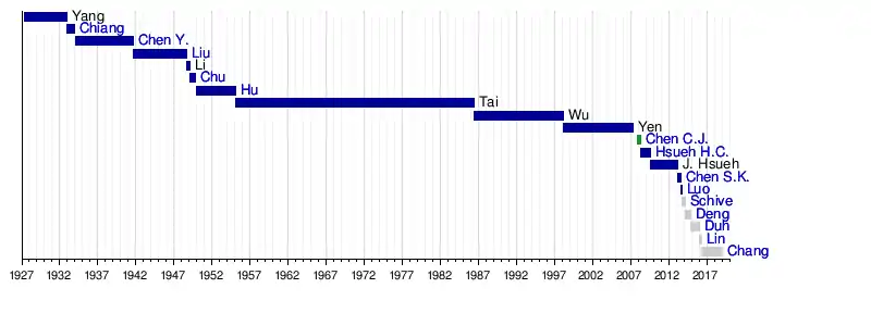 10 September 2009 | 18 February 2013 | Kuomintang | |