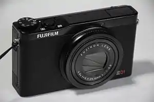 The Fujifilm XQ1 is a digital compact camera announced by Fujifilm on October 18, 2013. The XQ1 is a 2014 iF product design award recipient.[1] Its phase detection sensor gives it fast autofocus considering its class.[2][3]