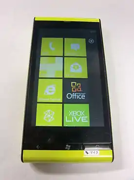 The Fujitsu Toshiba IS12T is a mobile smartphone running the Windows Phone operating system and was designed and manufactured by Fujitsu Toshiba.[3] The phone is waterproof[4] and is the first and only Windows Phone to be officially released in Japan under carrier KDDI.[5]