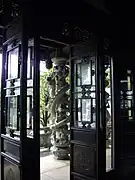 The garden also has gates on the four cardinal directions, a number of six-sided pavilions, sculptures, bells, several inscriptions painted large on wood and stone, and in one building, a small exhibit of Chinese paintings and of a model of the style of ship that would have journeyed to Fuzhou during the time of the Ryūkyū Kingdom to bring tribute and to engage in trade. The Chinese and Japanese concept "borrowing of scenery ("shakkei")" (借景, C:jie jing, J:shakkei) is also used, adding to the sense of the garden's size. One element indicative of Okinawa, however, is seen in the plants and trees chosen for the garden. Trees such as Murraya paniculata, a relative of the orange and mikan, called gekkitsu (月橘) in Japanese, and Acacia confusa, called sōshiju (相思樹) in Japanese, both native to the Ryukyu Islands, Taiwan, and parts of Southeast Asia, were chosen for their aesthetic qualities, particularly for their flowers, which allow the garden's appearance and atmosphere to change with the seasons in a particular way appropriate for a traditional Chinese garden.