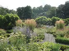 By 1681, the gardens at Fulham Palace were already remarkable, as John Evelyn noted when he visited them.[18] Bishop Compton's gardener in the early years was George London, who started a famous nursery at Brompton the year of Evelyn's visit. By 1686, William Penn's gardener was hoping to exchange the exotic flora of Pennsylvania for seedlings and slips of trees and shrubs and seeds from Fulham Palace gardens.[18] Compton's staunch defense of his former pupils, the Princesses Mary and Anne, led to his appointment as Deputy Superintendent of the Royal Gardens to William III and Mary II, and as Commissioner for Trade and Plantations. In the colonies, Compton had a botanical correspondent in John Banister, who was sent first to the West Indies and then to Virginia, and who, before his untimely death, sent Bishop Compton drawings, seeds, and herbarium specimens from which the Bishop's close friend John Ray compiled the first published account of North American flora, in his Historia Plantarum (1688).[19]