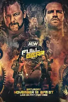 Full Gear featured professional wrestling matches that involved different wrestlers from pre-existing feuds and storylines. Wrestlers portrayed heroes, villains, or less distinguishable characters in events that built tension and culminated in a wrestling match or series of matches.[9] Storylines were produced on AEW's weekly television programs, Dynamite and Rampage, the supplementary online streaming shows, Dark and Elevation, and The Young Bucks' YouTube series Being The Elite.
