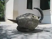 The Foundation is based in the old school buildings of Cerezales del Condado, constructed in 1931 and restored in 2009 with a major reorganization of the interior to accommodate activities of all kinds.[2] The result is a multipurpose space whose design allows it to be used as an exhibition gallery, an auditorium with stage, a classroom and administration offices, depending on the arrangement of its partitions.[8][9] In the landscaped area next to the building are three sculptures belonging to the foundation's collection of public art: Maternity by Castorina Fe Francisco, Whisper in Time by Tadanori Yamaguchi, and Large Goat by Eduardo Arroyo.[10]