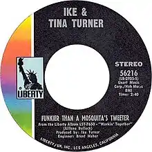 "Funkier Than a Mosquito's Tweeter" is a song written by Alline Bullock, sister of Tina Turner. It was first released by Ike & Tina Turner on their 1970 album Workin' Together with Tina Turner and the Ikettes on vocals.[1] Mosquita's was the original spelling of Mosquito's, but after jazz singer Nina Simone released her version in 1974, most subsequent releases of the song have used the latter spelling including Ike & Tina Turner reissues.