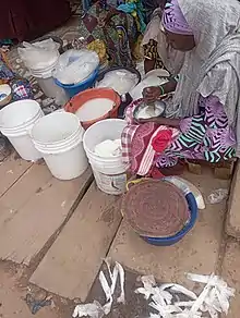 Fura or doonu is a type of food originating from West Africa’s Sahel region and that is popular among the Zarma-Songhai, Fulani and Hausa peoples of the Sahel.[1][2] It is a millet dough ball, with "fura" meaning millet ball. It is also eaten in Niger and Ghana.[3] Certainly, the making of the classic dish, fura da nono (seasoned, boiled millet balls served with sour milk), represents such a blending of food resources and styles of cuisine. This suggests that a transfer of the cuisine of fura served with sour ...[4] The millet is grounded into a powdered form, rolled and molded into balls, then mashed and mixed with Nono - a fermented milk.[5][6] The combination of fura and nono is known as Fura Da Nono, a locally-made drink that contains carbohydrate and fiber.[7] The fura food and the fura da nono drink are popular in Northern Nigeria. They are served during special occasions and as a meal in the afternoons.[8][9]