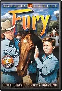 Fury (retitled Brave Stallion in syndicated reruns) is an American Western television series that aired on NBC from 1955 to 1960.[1] It stars Peter Graves as Jim Newton, who operates the Broken Wheel Ranch in California; Bobby Diamond as Jim's adopted son, Joey Clark Newton, and William Fawcett as ranch hand Pete Wilkey. Roger Mobley co-starred in the two final seasons as Homer "Packy" Lambert, a friend of Joey's.