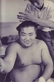 Fusanishiki Katsuhiko (born Seisho Sakura; January 3, 1936 – July 21, 1993) was a sumo wrestler from Ichikawa, Chiba, Japan. He made his professional debut in January 1952 and reached the top division in May 1957. His highest rank was sekiwake . Upon retirement from active competition, he became an elder in the Japan Sumo Association. He married the daughter of his stable master, ex-maegashira Shachinosato.[1] He was head coach at Wakamatsu stable from 1979 until 1990, when he left the Sumo Association because of poor health.[1] Former ōzeki Asashio Tarō IV took over as Wakamatsu's head coach in March 1990.[2][3]