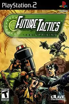 Future Tactics: The Uprising is a turn based tactical shooter video game by Zed Two. Once known as Pillage, this turn based shooter was stuck in development for a number of years before being picked up by Crave for a US release, followed shortly by JoWood for a European release. It plays a lot like the Worms 3D games and has a story penned by Paul Rose. The game features a geo-mod system in which almost anything can be destroyed, leaving battlefields scarred by craters.
