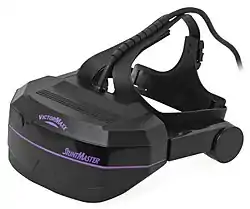 - Stuntmaster Head Mounted Display (HMD) - the first consumer virtual reality headset to ship in the market[3] The low-resolution, monocular device shipped with a patented[4][5] mechanical head tracker which had fast response times and accurate positioning. The product itself was marketed and sold under license by VictorMaxx.