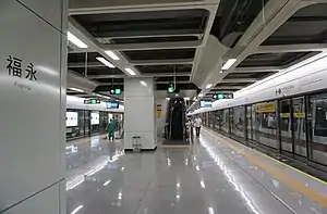 Fuyong station (Chinese: 福永站; Jyutping: Fuk1 Wing2 Zaam6) is an interchange station for Line 11 and Line 12 of Shenzhen Metro in Guangdong Province. The station serves Fuyong Subdistrict.