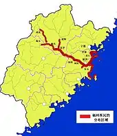 | The lower course of Min River and the coast of Fuzhou, Fujian Province in China | |