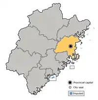 Although over time southern Fujian Province (Minnan region) is more developed in terms of technology and resources, Fujian decided on the capital Fuzhou which is in North Fujian.[5] Fujian has had a lower rate of urbanization in comparison to China as a whole. As a result, in provinces such as Fuzhou, the locals tend to be behind on methods in regards to agriculture and technological advancements. Fujian is rich in their ability to fish due to their location along the coastline. Fuzhou can not only participate in fishing itself but also the transporting of goods along the sea. Due to the richness of resources, the desire for migration to Fuzhou is high. As a result, people desiring to move to Fuzhou must have high education levels as well as skills necessary to contribute to the society.[5]