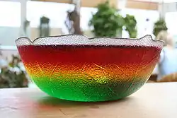 Götterspeise (literally: dish / fare of the gods) is the German name for a dessert made of gelatine or other gelling agent, sugar, flavourings and food colouring, it is similar or identical to jelly or jello and other gelatin desserts. Other German names include Wackelpudding ("wobbly pudding") or Wackelpeter ("Wobbly Peter");[1] green Götterspeise is also known as Froschsülze ("frog jelly"). Götterspeise is usually eaten with whipped cream or vanilla sauce. The best-known flavours are the following: