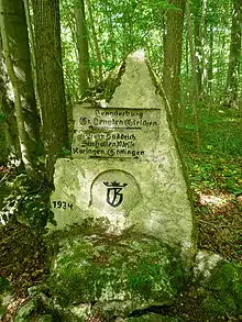 The Göttingen Forest is bounded to the north, east and south predominantly by steep hillsides. The exact boundary of the forest is, however, not always uniformly defined. For example, on the one hand, many define it in a narrow sense as only that part south of the B 27 excluding the Plessforst,[1] on the other hand, others refer to the climbing region of Göttingen Forest, an area also including those woods to the north, east and south.[2]