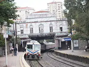 Göztepe station (Turkish: Göztepe İstasyonu) is a historical railway station in Kadıköy, Istanbul. Between 1969 and 2013, it was a station on the Haydarpaşa suburban railway line to Gebze. A modern station of the same name is now a stop on the Marmaray commuter rail service to Gebze.