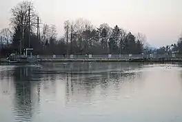 Gübsensee is a reservoir near the city of St. Gallen, Switzerland. Its dams were built between 1898 and 1900, the first hydroelectric reservoir in Switzerland. Kraftwerk Kubel has generated electrical power there since 1900.