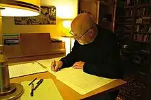From the mid-1960s onwards, he tried to mediate between the old and new generation of composers.[25][26] In 1967, he was appointed professor at the Hanns Eisler Academy of Music.[27][28] From 1968, he led a master class for composition at the Deutsche Akademie der Künste.[29] In 1972, he also took over a master class at the Berlin Musikhochschule.[15] In 1973, he received a full professorship in Berlin through the support of Ernst Hermann Meyer, who considered him "the most gifted composer of the middle and younger generations."[30] He was also a frequent lecturer at the Gera Summer Courses for Contemporary Music, founded in 1974[31] Among his best-known students today were the composers Udo Zimmermann, Lothar Voigtländer and Friedrich Schenker.[32] As a composition teacher, he wanted, according to his own statements, "never to impose my conception of music, but to encourage developments".[33] Kochan worked as a lecturer from 1985 and became emeritus after the fall of communism in 1991.[32][34]