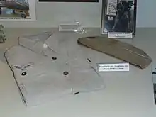 In September 1940, Lützow claimed three Hurricanes, one each on 7, 9 and 15 September.[40] In addition to the 15 aerial victories he had claimed since the start of the war, he was credited with three ground victories and one barrage balloon destroyed. Subsequently, he was awarded the Knight's Cross of the Iron Cross (Ritterkreuz des Eisernes Kreuzes) on 18 September 1940.[16] The presentation was made by Göring at the headquarters of the Wehrmachtbefehlshaber Niederlande (Supreme Commander of the Wehrmacht in the Netherlands), General der Flieger (General of Aviators) Friedrich Christiansen, at Wassenaar near The Hague on 19 September. That day, both Lützow and Wolfgang Schellmann, Geschwaderkommodore of Jagdgeschwader 2 "Richthofen" (JG 2—2nd Fighter Wing), were so honored.[41] Lützow was credited with three further victories against the RAF, two P-36s shot down on 5 October, and a Spitfire on 5 November 1940. These were his last victories claimed over the Western Front until 1945, taking his World War II score to 18.[40]