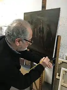Coşkun with a painting