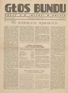 Głos Bundu (Polish language for 'Voice of the Bund') was a Polish-language monthly publication issued from Warsaw, Poland between August 1946 and May 1948.[1][2][3][4] Głos Bundu was an organ of the Central Committee of the General Jewish Labour Bund in Poland.[2][3] In total seventeen issues of Głos Bundu were published.[2]
