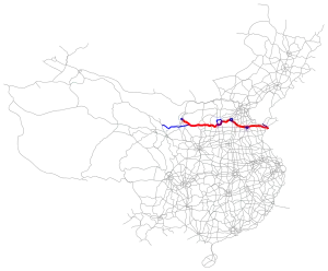 The Qingdao–Yinchuan Expressway (Chinese: 青岛—银川高速公路), designated as G20 and commonly referred to as the Qingyin Expressway (Chinese: 青银高速公路) is an expressway that connects the cities of Qingdao, Shandong, China, and Yinchuan, Ningxia. It is 1,600 km (990 mi) in length.