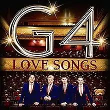 G4 Love Songs[3] is the fifth album released by X Factor runners-up G4. The album of love songs features Lesley Garrett, Merrill Osmond, Oli Nez and The City of Prague Philharmonic Orchestra. G4 Love Songs was funded by fans through PledgeMusic, where the funding reached 112%.[4] Part of the pledge money was donated to Breast Cancer Care.[5]