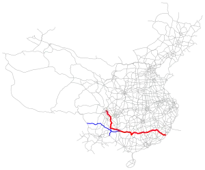 The Xiamen–Chengdu Expressway (Chinese: 厦门—成都高速公路), designated as G76 and commonly referred to as the Xiarong Expressway (Chinese: 厦蓉高速公路) is an expressway in China that connects the cities of Xiamen, Fujian, and Chengdu, Sichuan. When complete, it will be 2,192.2 km (1,362.2 mi) in length.