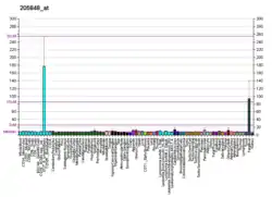 - Tsutsumi S, Kamata N, Vokes TJ, et al. (2004). "The novel gene encoding a putative transmembrane protein is mutated in gnathodiaphyseal dysplasia (GDD)". Am. J. Hum. Genet. 74 (6): 1255–61. doi:10.1086/421527. PMC 1182089. PMID 15124103.