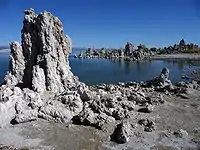 The GFAJ-1 bacterium was discovered by geomicrobiologist Felisa Wolfe-Simon, a NASA astrobiology fellow in residence at the US Geological Survey in Menlo Park, California.[8] GFAJ stands for "Give Felisa a Job".[9] The organism was isolated and cultured beginning in 2009 from samples she and her colleagues collected from sediments at the bottom of Mono Lake, California, U.S.A.[10] Mono Lake is hypersaline (about 90 grams/liter) and highly alkaline (pH 9.8).[11] It also has one of the highest natural concentrations of arsenic in the world (200 μM).[1] The discovery was widely publicized on 2 December 2010.[2]