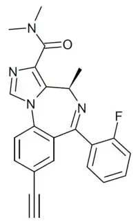 GL-II-73 (GL-ii-073) is a benzodiazepine derivative related in chemical structure to compounds such as midazolam and adinazolam. It is described as an α5 preferring positive allosteric modulator of the benzodiazepine site of GABAA receptors, with weaker activity at α2 and α3 and no significant affinity for the α1 subtype. In animal tests it was found to produce effects consistent with antidepressant, anxiolytic and nootropic actions.[1][2][3][4][5][6][7]