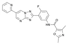 GNF6702 is the name for a broad-spectrum antiprotozoal drug invented by researchers working at the Genomics Institute of the Novartis Research Foundation in 2013,[1] with activity against leishmaniasis, Chagas disease and sleeping sickness. These three diseases are caused by related kinetoplastid parasites, which share similar biology. GNF6702 acts as allosteric proteasome inhibitor which was effective against infection with any of the three protozoal diseases in mice, while having little evident toxicity to mammalian cells.[2]