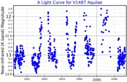 A near-infrared (K band) light curve for V1487 Aquilae, adapted from Neil et al. (2007)[1]