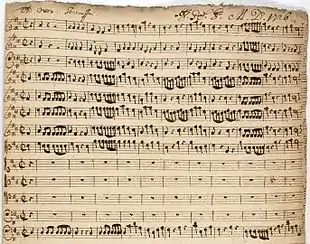 Graupner was hardworking and prolific. There are about 2,000 surviving works in his catalog, including 113 sinfonias, 85 ouvertures (suites), 44 concertos, 8 operas, 1,418 religious and 24 secular cantatas, 66 sonatas and 57 harpsichord partitas.[3] Nearly all of Graupner's manuscripts are housed in the University and State Library Darmstadt.