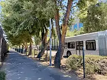 On June 23, 2009 construction began on a four-mile (6.4 km) extension from Canoga northward along the Southern Pacific trackbed[21] to the Metrolink station in Chatsworth. Metro's board approved the plan on September 28, 2006, and it was completed in 2012 at a cost of US$215 million (US$254 million in 2021 adjusted for inflation).[22][23][24] This created two branches at the western end of the line beyond Canoga station; the older branch proceeded outside the busway on city streets to Warner Center. In 2018, this branch was eliminated and replaced with a frequent service local shuttle, leaving the entirety of the Orange Line on the dedicated right-of-way.[25]