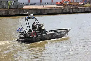 The G class, or "G-boat" also known as the Marine Alutech Watercat M8 landing craft (Finnish: G-vene, Swedish: Gruppbåt) is a type of vessel in use by the Finnish Navy and the Swedish Navy. The G-boat was originally designed for the Swedish Navy which ordered about 100 of them. It is primarily used for amphibious landings by, and transportation of, marines. It has a very low draught (approximately 20 cm) at high speeds which makes it ideal for amphibious assault even in shallow waters. It has a cargo capacity of 8 men or one metric ton.